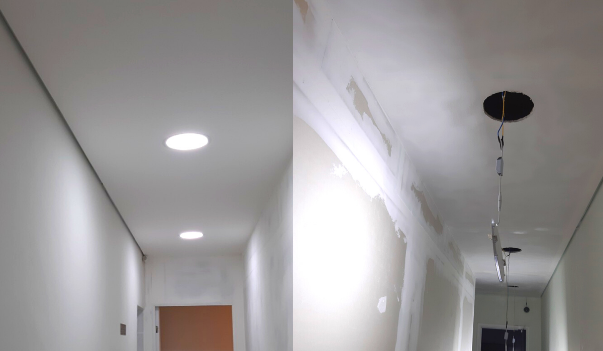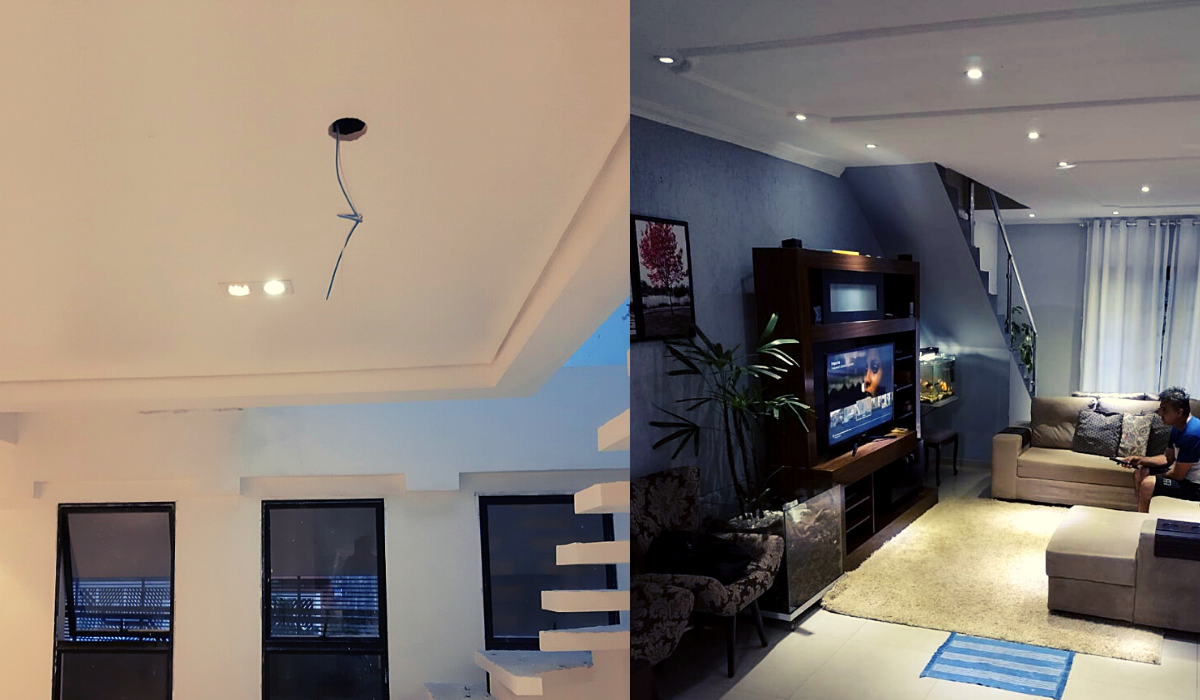 Tomadas e Extensão, Conversão de tomadas de 110V para 220V, Chuveiro, Interruptores, Ventiladores de teto com ou sem controle remoto, Triturador de pia, Coifas, Exaustores, Reatores, Relé foto célula, Sensor de presença (teto e parede), Dimmer, Luminárias (Lustres, Calhas Fluorescente, Spots, Arandelas, Globos, Etc.), Dicróica em gesso, Aquecedores, Interfones, Porteiro eletrônico, Lavatórios (Residência, Salões, Escolas), Painéis de iluminação para sala especifica, Tubulação para: telefonia, lógica e câmera, Instalação elétrica para motores.
